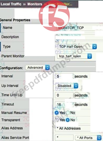 An LTM Specialist configures a new virtual server with a single pool member. The LTM Specialist has NOT defined a health monitor for the pool, pool member or node.