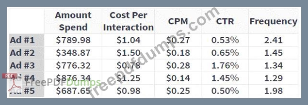 After a week of running the campaign you see the following results: