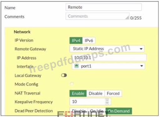 Refer to the exhibit, which contains a screenshot of some phase 1 settings.