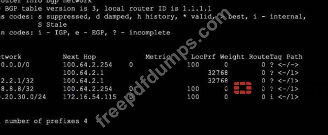 Refer to the exhibit, which shows the output o! the BGP database.
