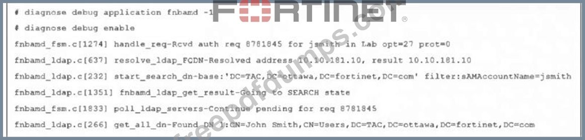 Refer to the exhibit, which shows a partial output of a real-time LDAP debug.