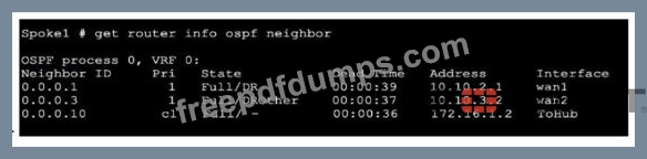 Refer to the exhibit, which shows the output of get router info ospf neighbor.