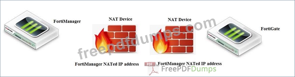 If both FortiManager and FortiGate are behind the NAT devices, what are the two expected results? (Choose two.)