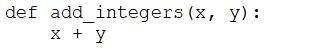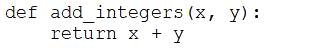 A data engineer that is new to using Python needs to create a Python function to add two integers together and return the sum?