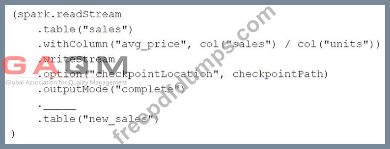 If the data engineer only wants the query to process all of the available data in as many batches as required, which of the following lines of code should the data engineer use to fill in the blank?