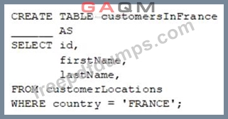 A data engineer wants to create a new table containing the names of customers that live in France.