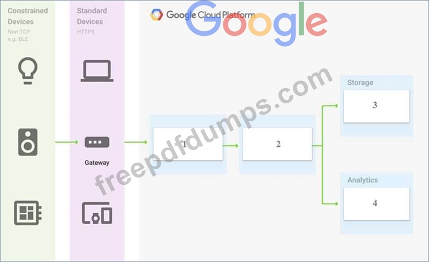 Which Google Cloud Platform services should you put in boxes 1,2,3, and 4?