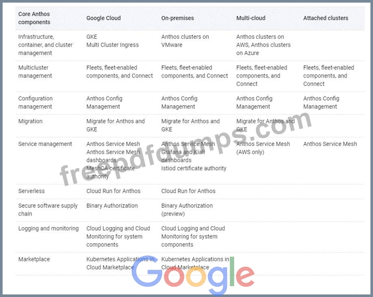 Which of the followings are core components of Anthos?