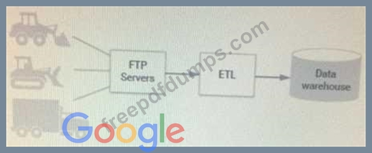TerramEarth's existing architecture is composed of Linux-based systems that reside in a data center. These systems gzip CSV files from the field and upload via FTP, transform and aggregate them, and place the data in their data warehouse. Because this process takes time, aggregated reports are based on data that is 3 weeks old.