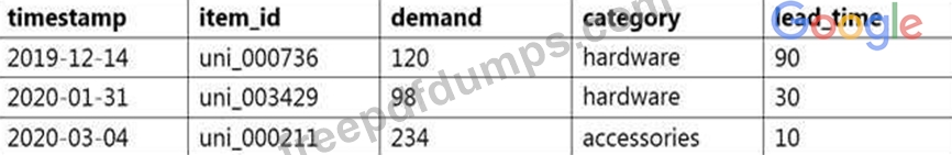 A data scientist wants to use Amazon Forecast to build a forecasting model for inventory demand for a retail company. The company has provided a dataset of historic inventory demand for its products as a .csv file stored in an Amazon S3 bucket. The table below shows a sample of the dataset.