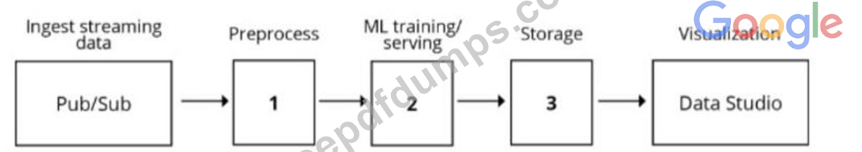 You are building an ML model to detect anomalies in real-time sensor dat a. You will use Pub/Sub to handle incoming requests. You want to store the results for analytics and visualization. How should you configure the pipeline?