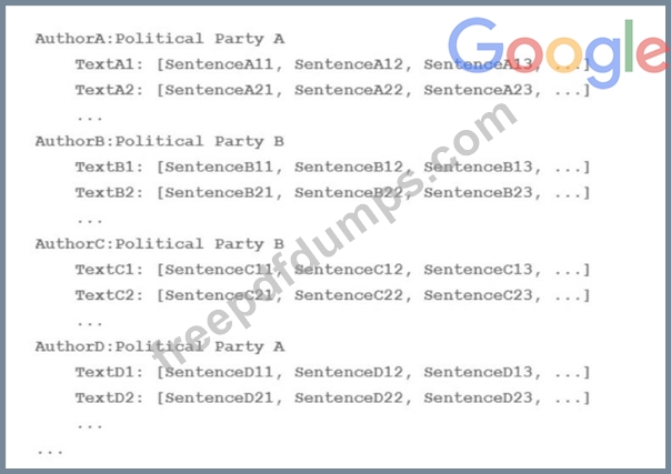 Your team is working on an NLP research project to predict political affiliation of authors based on articles they have written. You have a large training dataset that is structured like this: