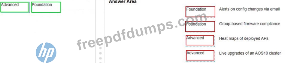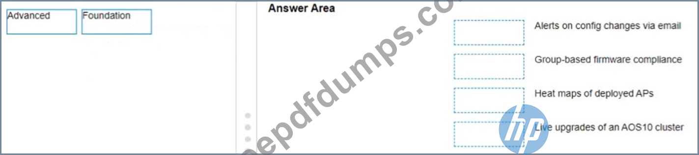 A network administrator with existing IAP-315 access points is interested in Aruba Central and needs to know which license is required for specific features Please match the required license per feature (Matches may be used more than once.)