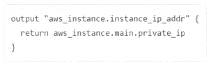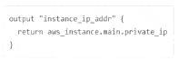 You are writing a child Terraform module that provisions an AWS instance. You want to reference the IP address returned by the child module in the root configuration. You name the instance resource "main'.