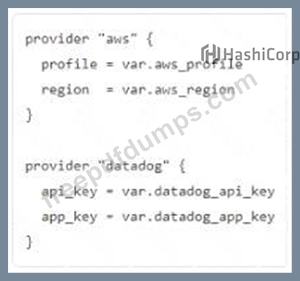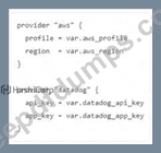 You ate creating a Terraform configuration which needs to make use of multiple providers, one for AWS and one for Datadog. Which of the following provider blocks would allow you to do this?