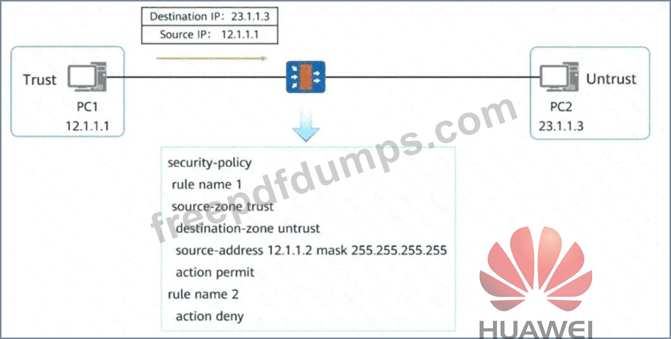 A firewall receives a packet that PC1 sends to PC2. Which of the following statements are true?