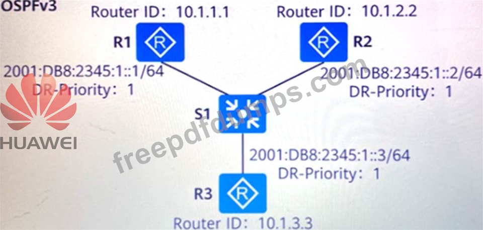OSPFv2 is an IGP running on an IPv4 network; OSPFv3 is an IGP running on an IPv6 network. The basic working mechanism of OSPFv3 is the same as OSPFv2, such as the election of DR and BDR. As shown in the figure, an engineer uses three routers to test IPv6 services. He wants to realize the interconnection and interoperability of IPv6 networks by running OSPFv3.