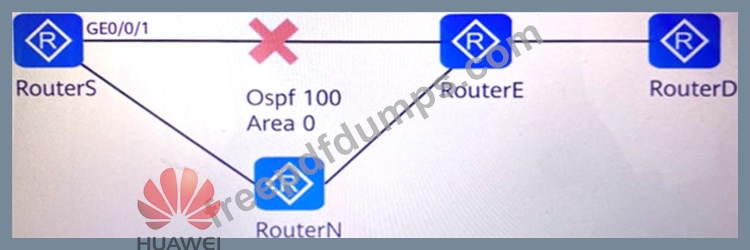 As shown in the figure, the entire network of a certain company uses OSPF to get through the network. However, RouterS and RouterE cannot establish an OSPF neighbor relationship. When detecting OSPF failures, network administrators can execute the display ospf 100 () interface GEO/0/1 command on RouterS to obtain error-related information. Users can perform OSPF failure diagnosis based on this information. (Please use English lowercase letters to complete the command, and the command cannot be abbreviated)