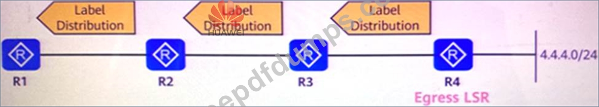 As shown in the figure, R1, R2, R3, and R4 are in the same MPLS domain, and LDP is used to allocate MPLS labels between devices. R4 is the FEC Egress LSR of 4.4.4.0/24. If you want to realize that when R1 accesses 4.4.4.0/24, R4 does not need to query the label table but can understand the forwarding priority of the data, then R3's outgoing label for the FEC should be (). (Please fill in the Arabic numerals directly, without symbols)