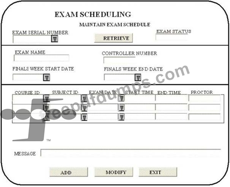 -The controller uses the Maintain Exam Schedule screen to schedule exams for various courses and subjects.