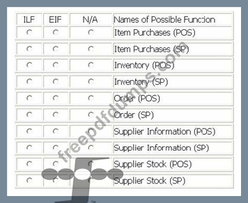 -From the Names of Possible Functions listed identify the data function both the SP and POS applications. Select N/A if a Name of Possible Function does not apply.