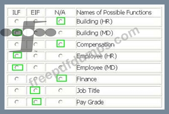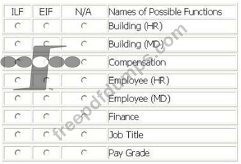 From the Names of Possible Functions listed identify the data functions for the HR application and the MD application. Select N/A if a Name of Possible Function does not apply.