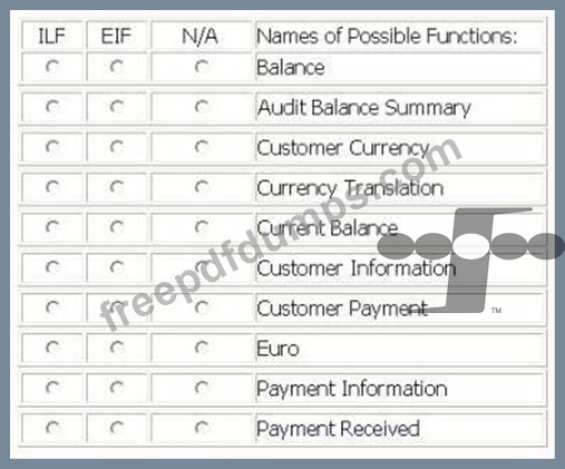 From the Names of Possible Functions listed identify the data functions for the AR application. Select N/A if a Name of Possible Function does not apply.