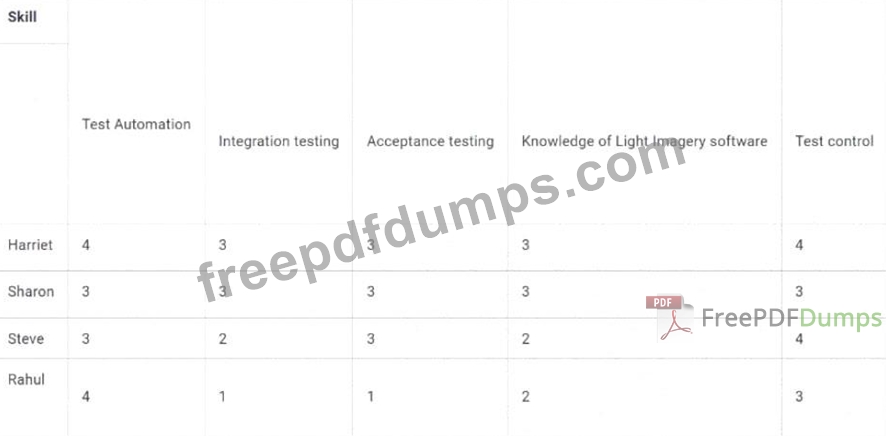 Refer to SCENARIO 2 - You are the test manager for Project 3 and have performed a skills assessment of your Safe as Houses' test team. You must now decide what training or skills development is required.