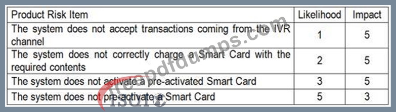 You are following a risk-based testing strategy. The test execution time is very limited. Assume that all the product risk items require more or less the same level of test effort.