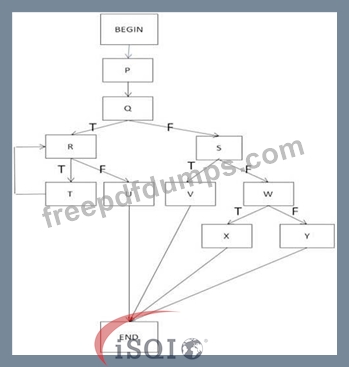 The flow graph below shows the logic of a program for which 100% statement coverage and 100% decision coverage is required on exit from component testing.