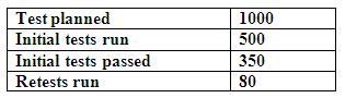 Given the following figures for the testing on a project, and assuming the failure rate for initial tests remains constant and that all retests pass, what number of tests remain to be run? 3 credits