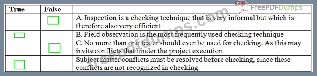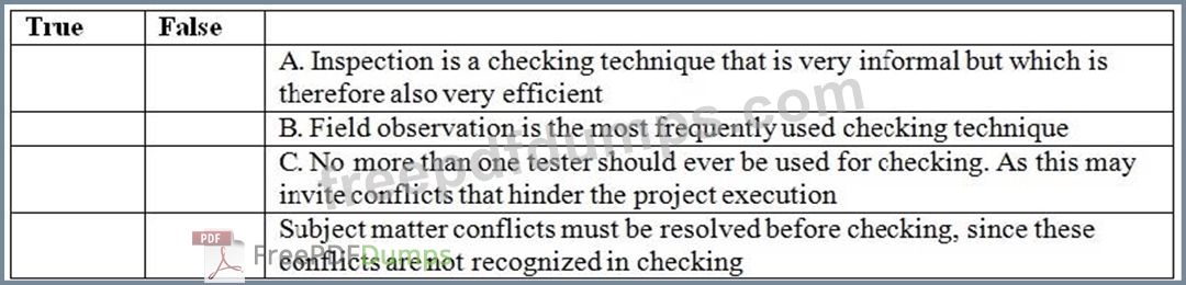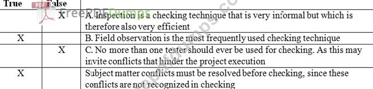 Requirements must be checked in terms of content, documentation and agreement. Which options indicates with regard to this whether each statement is true or false.