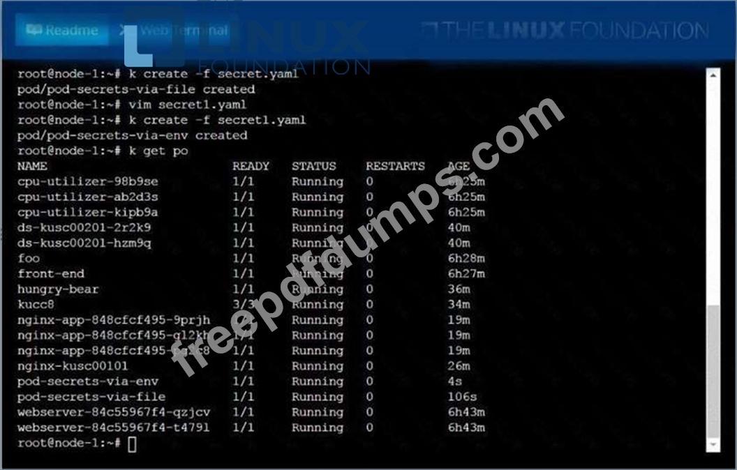 Create a second pod namedpod-secrets-via-env Image, which exportspasswordas CONFIDENTIAL