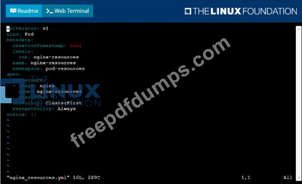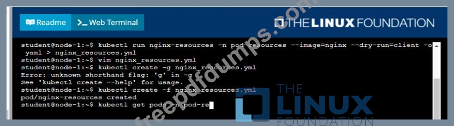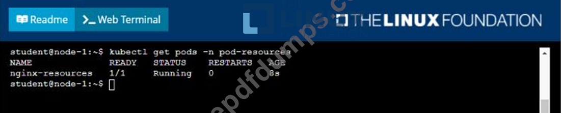 * Create a pod named nginx-resources in the pod-resources namespace that requests a minimum of 200m CPU and 1Gi memory for its container