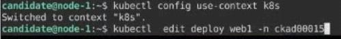 1- Update the Propertunel scaling configuration of the Deployment web1 in the ckad00015 namespace setting maxSurge to 2 and maxUnavailable to 59