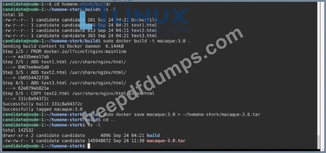 2) Using the tool of your choice export the built container image in OC-format and store it at -/human stork/macque 3.0 tar