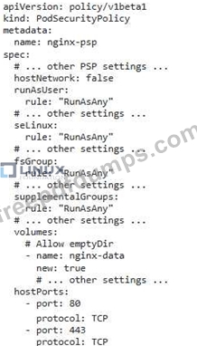 You have an Nginx pod deployed in your Kubernetes cluster. You need to set up a PodSecurityPolicy (PSP) that allows the Nginx pod to access only specific network ports and disallows it from accessing other ports. Describe the steps you would take to implement this PSP.