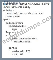 You have a Kubernetes cluster with a deployment running a critical application. You need to restrict inbound network access to the pods in this deployment to only allow traffic from a specific service within the cluster. How would you achieve this using NetworkPolicy?