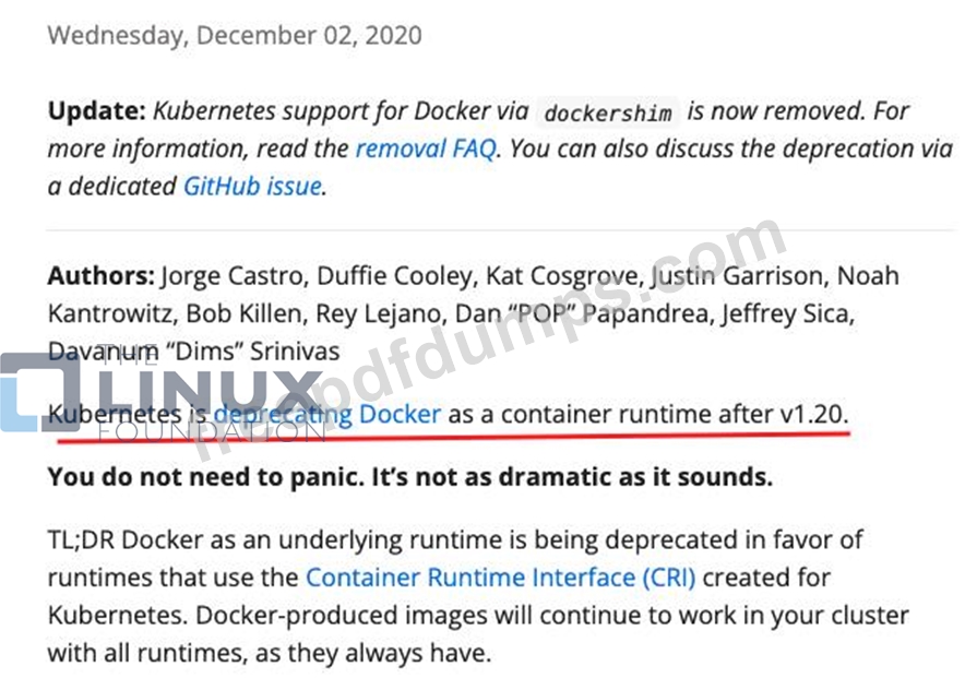 Which of the following container runtime is planned to be deprecated in Kubernetes 1.20 and high-er?