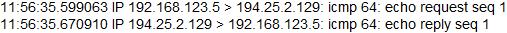 What command, without options, parameters or arguments, was used on the host 192.168.123.5 to generate this output?