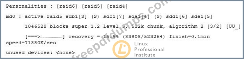 What information is found in the following excerpt from the file /proc/mdstat? (Choose two.)