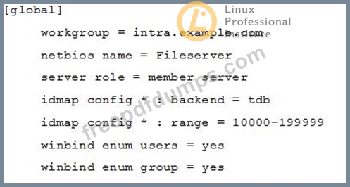 In order to join a file server to the Active Directory domain intra.example.com, the following smb.conf has been created: