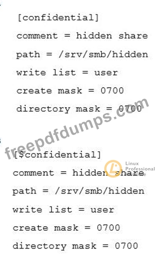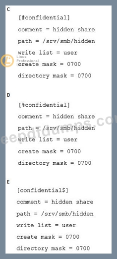 A user requests a "hidden" Samba share, named confidential, similar to the Windows Administration Share. How can this be configured?