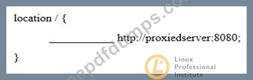 When trying to reverse proxy a web server through Nginx, what keyword is missing from the following configuration sample?