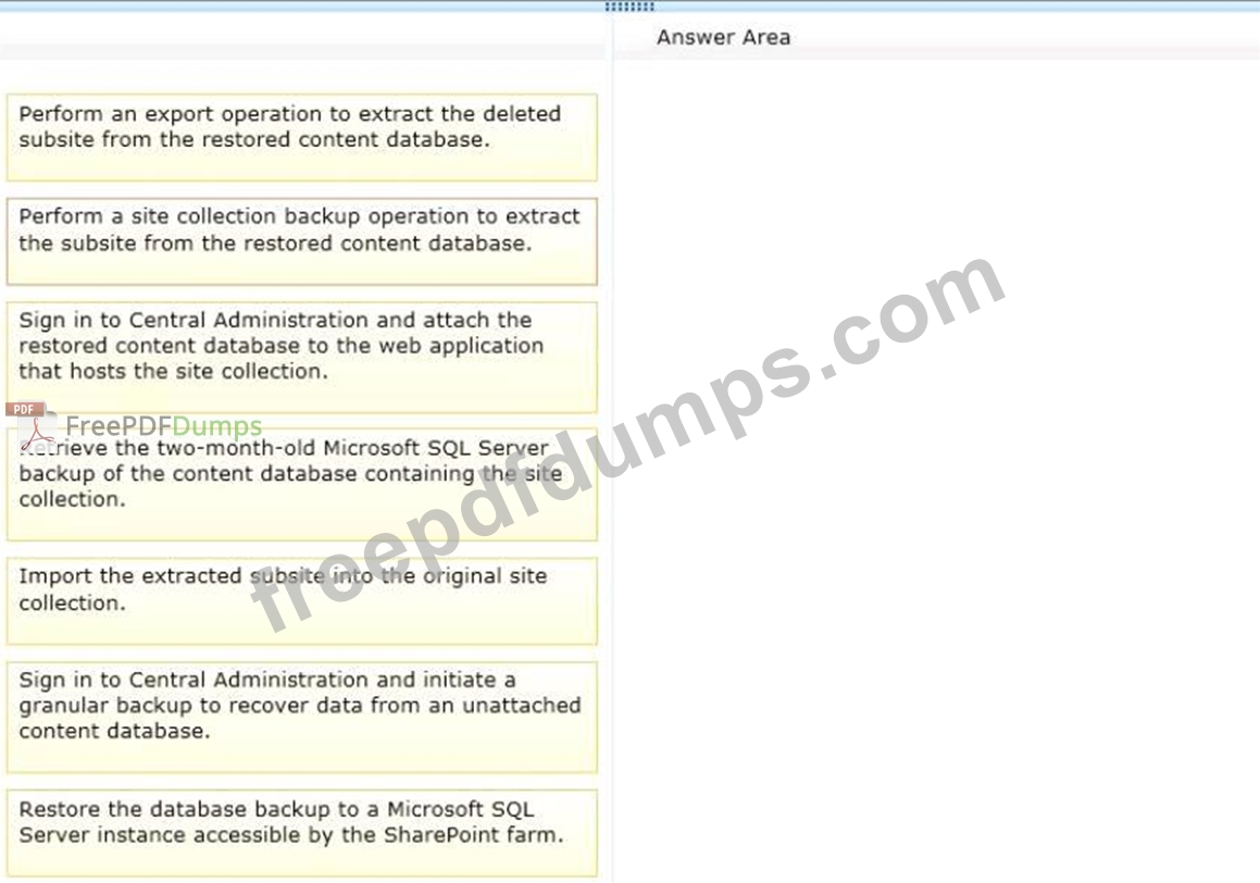 the answer area. Each element may be used once, more than once, or not at all. You may need to drag the split bar
