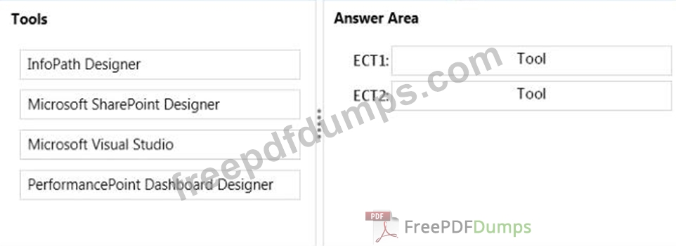 Which tool should you recommend? (To answer, drag the appropriate tools to the correct external content types. Each