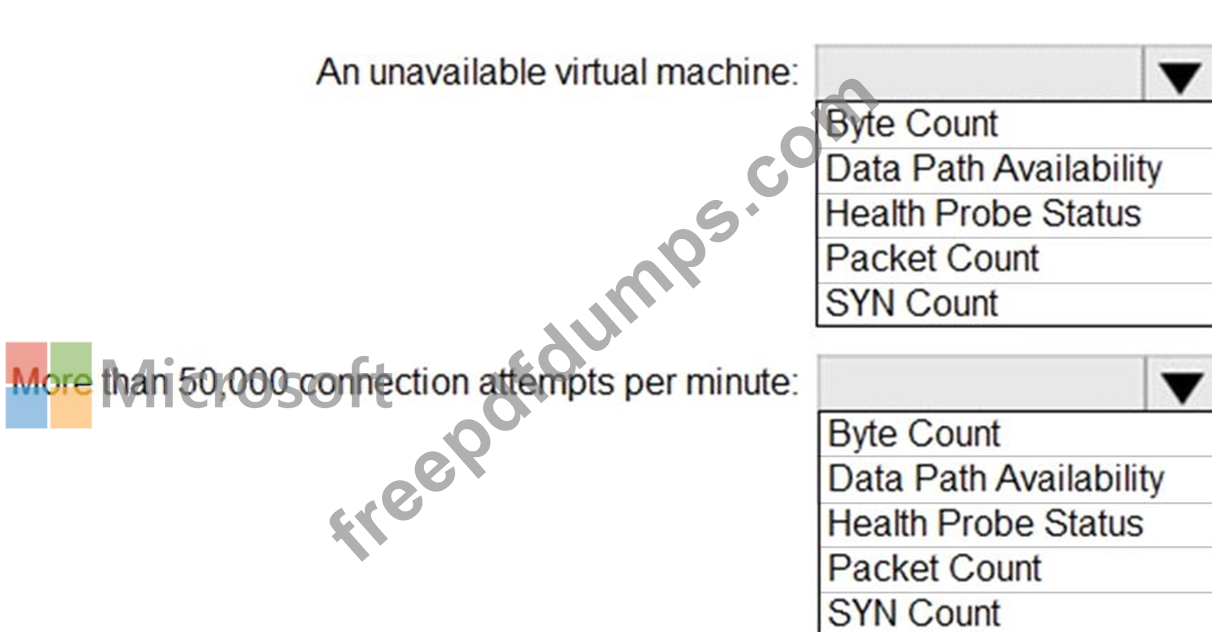 You need to develop a monitoring solution for LB1. The solution must generate an alert when any of the following conditions are met: