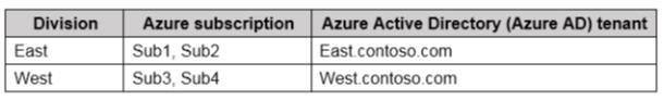 Your company has the divisions shown in the following table.