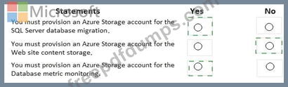 You are evaluating the components of the migration to Azure that require you to provision an Azure Storage account.