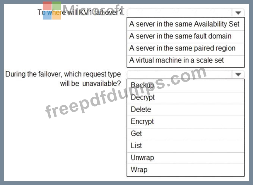 You need to identify the following if the Azure region that hosts KV1 becomes unavailable: